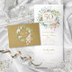 Une élégante invitation de 50e anniversaire de mariage en triptyque tout-en-un, avec une belle guirlande de roses et une typographie dorée chic. L'invitation comprend les détails de votre célébration et une carte RSVP détachable. Conçue par Thisisnotme©
