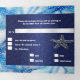 Cet invitation chic, élégant et élégant, économique et respectueux de l'environnement, est doté d'un motif d'étoiles de mer pastel et bleu moyen aux incrustations bleu foncé sur lesquelles des modèles blancs apparaissent pour votre formulation personnalisée. La section du milieu a un cadre carré en faux argent avec un modèle pour une photo couleur du couple nuptial. Ce design unique et très chic est idéal pour sous la mer, la barrière de corail, l'île tropicale, la destination côtière et les mariages à thème nautique.