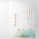 Cette invitation triplée présente un trait d'aquarelle en bleu marine profond avec des accents d'or imitant les vagues sur la plage, ce qui en fait un choix parfait pour un été ou un mariage sur la plage. Il est minimaliste et élégant dans la disposition et les choix de police, également très facile à customiser. D'autres articles de cette collection le complètent très bien, alors jetez un oeil à toute la collection "Watercolor Waves" dans notre magasin.