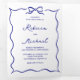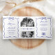 Invitation Trois Volets Blue Hand Drawn Bow QR Code Photo Wedding