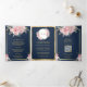 Invitation Trois Volets Blush rose Floral Marine bleu tout en un Mariage