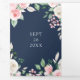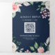 Invitation Trois Volets Blush rose Floral QR Code Marine Mariage bleu
