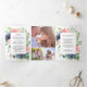 Invitation Trois Volets Blush Rose Navy Blue Floral Photo Collage Mariage