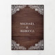 Éblouissez vos invités avec cette élégante invitation de mariage à thème occidental avec de beaux fer à cheval et de la dentelle blanche sur un arrière - plan rustique en bois de grange avec carte RSVP détachable. Ajoutez simplement les détails de votre événement sur ce modèle facile à utiliser et ornez cette carte avec votre photo préférée pour en faire une invitation unique.