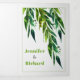 Branche Eucalyptus dans les tons verts triplé faire-part de mariage. Un design agréable pour votre mariage de printemps. La couverture présente des branches en cascade de feuilles eucalyptus et les noms du couple. Les panneaux intérieurs comprennent les détails de votre mariage et de votre RSVP qui peuvent être détachés. Il y a une photo du couple à l'extérieur derrière.