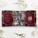 Invitation Trois Volets Burgundy Gold Abstrait Fluid Ink QR Code Mariage