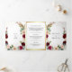 Invitation Trois Volets Burgundy Pêcher Floral tout en un QR Code Mariage