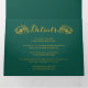Vintage cadre fleuri or avec initiales sur faire-part de mariage triplé vert à feuillage persistant. Les éléments de cette invitation de mariage sont la belle vintage cadre en or fait de feuilles acanthus et des fleurs avec vos initiales et les polices sur arrière - plan vert.
