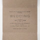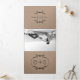 Élégant cadre noir et initiales monogramme kraft papier style rustique tri-pli. Il présente vos initiales dans un cadre noir avec des feuilles sur papier kraft sur la couverture. Les panneaux intérieurs comprennent votre texte tandis qu'il y a une photo sur le dos extérieur et la date du mariage sur le rabat extérieur.