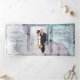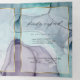 Éclaboussure éthérée d'encre alcoolisée dans des nuances de bleu océan, de sarcelle et de pourpre améthyste riche - chaque section est mise en valeur par un sur-étui encadré d'or blanc pur, sur le centre avant se trouve votre photo accentuée d'un double cadre doré et derrière le sur-étui blanc pur pour un attrait ésotérique - à l'intérieur de la couverture se trouve une deuxième photo de votre choix - l'invitation de mariage est au centre et la réponse détachable est sur la dernière section. Cette invitation est conçue pour être expédiée telle quelle, pliée sans enveloppe - Ce magnifique design abstrait moderne est parfait pour une invitation de mariage tout-en-un comprenant une réponse détachable pré-adressée avec choix de repas pour que vos invités puissent facilement la renvoyer - une invitation de mariage tout-en-un époustouflante -