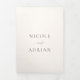 Elégante invitation à tricoter mariage avec des polices serif traditionnelles dans un agencement simple.