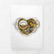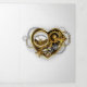Coeur steampunk mécanique, volumétrique, avec manomètre, acier et or sur arrière - plan blanc. Style Steampunk.