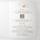 Cette invitation photographique mariage à triple pli blanc et or tisse vos souvenirs chéris avec un motif céleste, ce qui en fait un choix idéal pour des thèmes comme "Sous les étoiles", "Sur la Lune et derrière" ou "Écrit dans les étoiles". Le design fusionne l'invitation elle-même, les détails de votre mariage et le RSVP en un ensemble homogène et sophistiqué. En outre, il offre la flexibilité de personnaliser avec un code QR, vous permettant de substituer l'URL donnée à l'un de vos choix. Embellie d'illustrations exquises d'une lune d'or croissant, d'un halo solaire brillant, de planètes assorties, de constellations et de galaxies, cette invitation capture l'allure enchanteresse d'un ciel étoilé étoilé. Optez pour une photo unique pour les deux côtés, ou sélectionnez deux images uniques pour améliorer la variété.