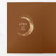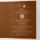 Ce faire-part de mariage triplé en terre cuite enchanteur fusionne magnifiquement vos photos chères avec un design cosmique et mystique extraordinaire, idéal pour des thèmes comme "Under the Stars", "To the Moon and Back" ou "Written in the Stars". La carte tri-pliée consolide élégamment votre invitation de mariage, les détails - information, et RSVP en un ensemble sophistiqué. En outre, vous pouvez ajouter un code QR - il suffit de remplacer l'URL existante par l'un de vos choix. Le design est orné d'illustrations exquises d'une lune de croissant d'or, d'un halo solaire brillant, de planètes assorties, de constellations et de galaxies, capturant l'essence fascinante d'un ciel nocturne rempli d'étoiles. Vous avez la flexibilité de présenter une seule photo sur les deux côtés ou de sélectionner deux photos différentes pour ajouter plus de variété.
