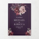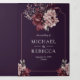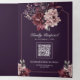 Invitation Trois Volets Dark Purple Moody Floral Frame QR Code Wedding