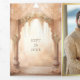 Amaze your guests with this elegant all in one Indian wedding invite featuring beautiful arches decorated with curtains and cream flowers. Modern gold typography with QR Code for online RSVP. Simply add your event details on this easy-to-use template and adorn this card with your favorite photo to make it a one-of-a-kind invitation.
