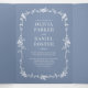 Annoncez votre journée spéciale avec cette carte victorienne triplée bleu poussiéreuse avec mariage romantique à la française et deux emplacements photo élégants. Des détails floraux vintages et un code QR intégré créent un mélange gracieux de beauté classique et de commodité moderne, parfait pour les couples à la recherche d'un charme intemporel avec des touches personnalisées.