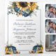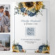 Invitation Trois Volets Dusty Blue Roses Sunflowers Photo QR Code Wedding