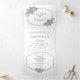 Invitation Trois Volets Eau bleu foncé fleurs argent mariage