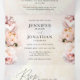 Faire-part de mariage tout-en-un conçu avec des pivoines et des roses roses blush doux élégants. Les invités peuvent facilement répondre à votre mariage. Modifier toutes les informations. Articles assortis dans notre magasin. Cava Party Conçu