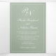 Traditionnel et élégant tout en un modèle faire-part de mariage avec carte rsvp et carte d'enceinte attachée, rendant cette suite d'invitation pratique et économique. Le faire-part de mariage a votre deux monogramme initial et vos noms dans une calligraphie élégante à l'intérieur d'une mince bordure avec votre photo préférée à l'arrière. Les éléments de conception sont en vert sauge et peuvent être changés en n'importe quelle couleur que vous souhaitez dans l'outil d'édition de conception. La carte postale RSVP a votre adresse postale au dos et vos invités vous coupent et vous renvoient un courriel. REMARQUE : L'affranchissement de première classe est obligatoire pour la carte postale RSVP. Les timbres de carte postale ne suffiront pas en raison de la taille. Ce design classique est parfait pour un mariage formel. Les invitations tout-en-un sont pratiques et économiques.
