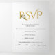 Elégante esperluette à faire-part de mariage Tri-Fold rose blanche. Un design mariage élégant qui présente vos noms et l'esperluette en or avec une rose blanche sur la couverture. Il inclut les détails de votre mariage sur le premier panneau intérieur tandis que le panneau dernier comprend le RSVP, qui peut être détaché.