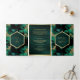 Invitation Trois Volets Emerald Gold Abstrait Fluid Ink QR Code Mariage
