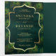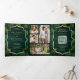 Invitation Trois Volets Emerald Green Peacock Feathers QR Code Mariage