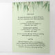 Préparez la scène pour une soirée enchantée avec ces invitations tout-en-un de mariage. Ce tout en une faire-part de mariage vibrante présente un cadre faux métallique avec des feuilles d'eucalyptus peints dans les coins sur un arrière - plan aquarelle. Dans le cadre, vos noms et les détails du mariage sont affichés dans des polices élégantes. A l'intérieur de la carte, tous les détails sont dans une police serif élégante sous le feuillage d'eucalyptus et un arrière - plan vert clair qui crée un sentiment de calme et de continuité. La chronologie du jour de mariage est au verso avec du texte et des icônes. Certaines images sont également amovibles. Customisez-le avec vos propres détails.