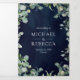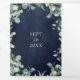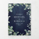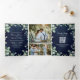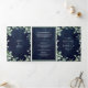 Invitation Trois Volets Eucalyptus moderne QR Code Marine Mariage bleu