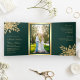 Invitation Trois Volets Faux Gold Foil Feuilles Floral Emerald Green Maria