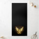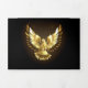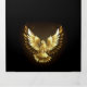 Colombe dorée volante sur fond noir.