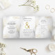 Invitation Trois Volets Feuilles blanc et or tout en un Mariage