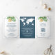 Invitation Trois Volets Feuilles tropicaux Dusty Blue World Map Mariage