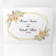 Peach aquarelle fleurs de cactus et noir script typograohy floral mariage Tri-Fold Invitation. Il présente un cadre polygonal doré avec vos noms dans la typographie en script noir et un bouquet de fleurs de cactus à l'aquarelle de pêche avec de succulents feuilles sur la couverture et le premier panneau intérieur, vos informations mariages sur le milieu intérieur et vos détails sur le panneau dernier intérieur. Le rabat affiche votre date de mariage et le bouquet floral, tandis que le dos affiche votre photo avec vos initiales.