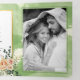 Invitation Trois Volets Fleurs de Pêche, feuille sauge vert mariage