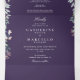 Un élégant tout en un faire-part de mariage triplé avec votre photo spéciale, des initiales monogrammes, et une cascade de feuillage fleuri fleur sauvage renfermant vos détails mariages sur un arrière - plan violet. L'invitation comprend les détails de votre invité de célébration et une carte RSVP détachable. Conçu par Thisisnotme©