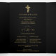 Celebrate a wedding filled with faith and elegance with this exquisite contemporary invitation design. The deep black background adds a modern and distinguished presence, while the text and decorative accents in faux gold create a luminous and sophisticated contrast that evokes the warmth and solemnity of sacred love. On the cover, a delicate golden cross symbolizes spiritual union — ideal for both Christian and Catholic ceremonies that wish to reflect devotion and style in equal measure.