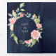 Invitation Trois Volets Floral rose pâle Fleur Photo Mariage bleu marine