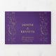 Invitation Trois Volets Flore d'or orange sur Mariage violet foncé