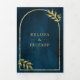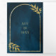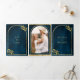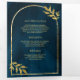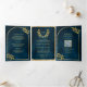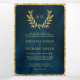 Invitation Trois Volets Gold Laurel Wreath Feuille Océan Bleu Mariage