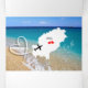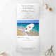 Un faire-part de mariage moderne à triple pli pour les couples se mariant à Ibiza l'une des belles îles Baléares espagnoles qui est montré dans une silhouette carte sur une scène de plage de sable. L'invitation a une section RSVP coupée et est facile à customiser avec vos propres détails de mariage et photo personnelle sans frais supplémentaires.