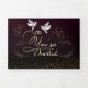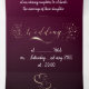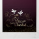 con textura de color cereza degradado y palomas blancas con dos anillos purpurina en la parte inférieure y palomas doradas en la parte intérieur acompañadas con la invitación de los padres a la boda de la hija.