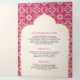 Éblouissez vos invités avec cette invitation traditionnelle de mariage indien mettant en vedette un bel arrière - plan motif ethnique avec arche de style indien. Ajoutez simplement les détails de votre événement sur ce modèle facile à utiliser pour en faire une invitation unique.