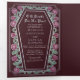 Faites une déclaration audacieuse d'amour éternel. Cette invitation de mariage gothique présente « Jusqu'à ce que la mort nous sépare » dans un cadre en forme de cercueil, orné de roses, d'épines et d'accents argentés sur fond rouge. Parfait pour une célébration d'un romantisme hanté ! Personnalisez le texte, la police et la couleur de fond pour répondre à vos préférences de conception. Articles assortis dans notre boutique pour un thème de fête complet. Veuillez noter que l'argent sur l'invitation n'est PAS du véritable feuille d'argent et est imprimé en couleurs plates.