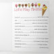Un design d'illustration de crème glacée mignonne et colorée avec des boules lumineuses de crème glacée dans des cônes de sucre éparpillés autour du bord de confettis invitation et arc-en-ciel formant une bordure autour de votre belle photo Enfants. Le rabat extérieur remercie vos invités de se joindre à vous et l'intérieur a trois jeux amusants à jouer - bingo bébé, bingo mot et jouons d'abord