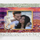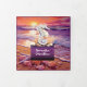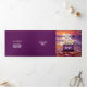 Cet invitation chic, élégant et élégant, économique et dispose de belles plages de sable couleur de l'eau remplies de coquillages et d'un joli paysage qui a le coucher du soleil au loin. Les coquilles ont pris les teintes rose, violet, jaune et blanc des tons coucher/lever du soleil et une couche douce de parties scintillant repose sur le bord inférieur qui peut être supprimé si non requis. Les lapis rayés violets et les incrustations noires ont des modèles blancs sur eux et le panneau avant, central et coupé rsvp ont des hippocampes 3D blancs bordés d'orange pâle sur eux. La section du milieu a un faux cadre doré avec un modèle pour une photo couleur du couple nuptial. Ce design unique et très chic est idéal pour sous la mer, la barrière de corail, l'île tropicale, la destination côtière et les mariages à thème nautique.