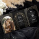 Ce faire-part de mariage triplé noir enchanteur mêle harmonieusement les photos personnelles avec un thème céleste fantaisiste, parfait pour des thèmes comme "Sous les étoiles", "Sur la Lune et derrière" ou "Écrit dans les étoiles". La conception intègre élégamment votre faire-part de mariage, vos détails et votre RSVP dans un ensemble cohérent. Vous pouvez personnaliser les deux côtés avec la même photo ou sélectionner des images différentes pour une touche unique. De plus, une troisième photo peut être ajoutée sur le côté avant où réside actuellement le motif étoilé. Si vous avez beaucoup plus de détails mariages à partager, vous pouvez remplacer la photo dans le cadre de l'arc à l'intérieur par du texte, en laissant les photos sur le côté avant seulement. Pour plus de commodité, la section RSVP peut être personnalisée avec votre code QR en remplaçant simplement l'URL fournie par votre propre dans l'outil d'édition. Ce design sophistiqué présente des illustrations délicates d'une lune d'or croissant, d'une étoile de tir radiante, de planètes, de constellations et de galaxies, capturant l'attrait magique d'un ciel étoilé.
