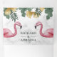 Éblouissez vos invités avec cette élégante invitation de mariage à thème tropical tout-en-un avec de beaux feuilles et de mignons flamants roses face à face sur un arrière - plan en marbre blanc avec carte postale RSVP détachable. Ajoutez simplement les détails de votre événement sur ce modèle facile à utiliser et ornez cette carte avec votre photo préférée pour en faire une invitation unique.