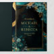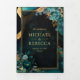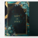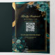 Invitation Trois Volets Marbre Turquoise foncé en or floral QR Code Mariag
